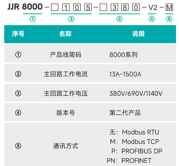 雷诺尔软启动器 JJR8000系列产品型号说明